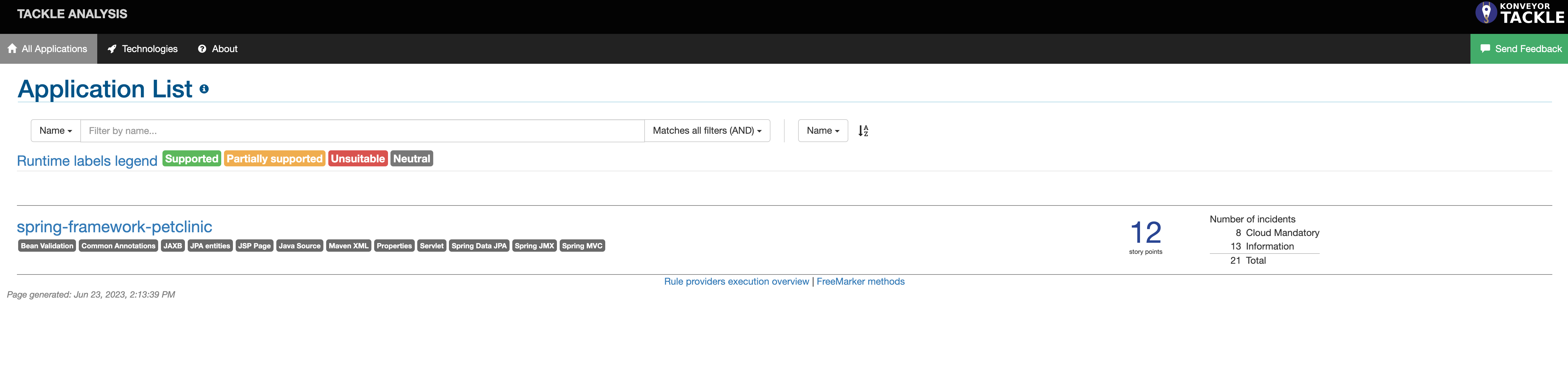 spring-framework-petclinichyperlink and a dashboard gets displayed. Navigate to theIssuestab where you can explore the issues. Pay attention to the ones that are categorized asCloud Mandatoryas they have to be addressed for a successful migration to Kubernetes.